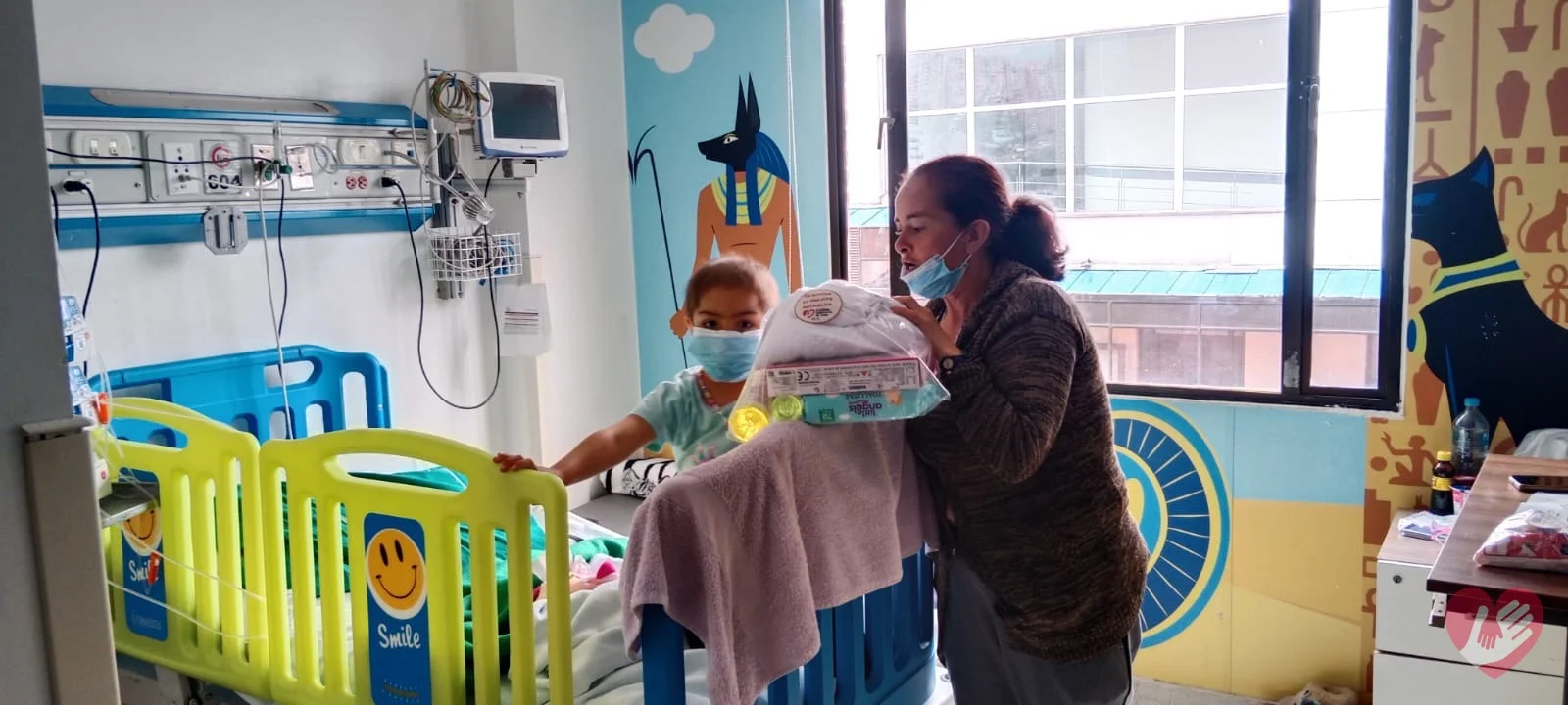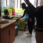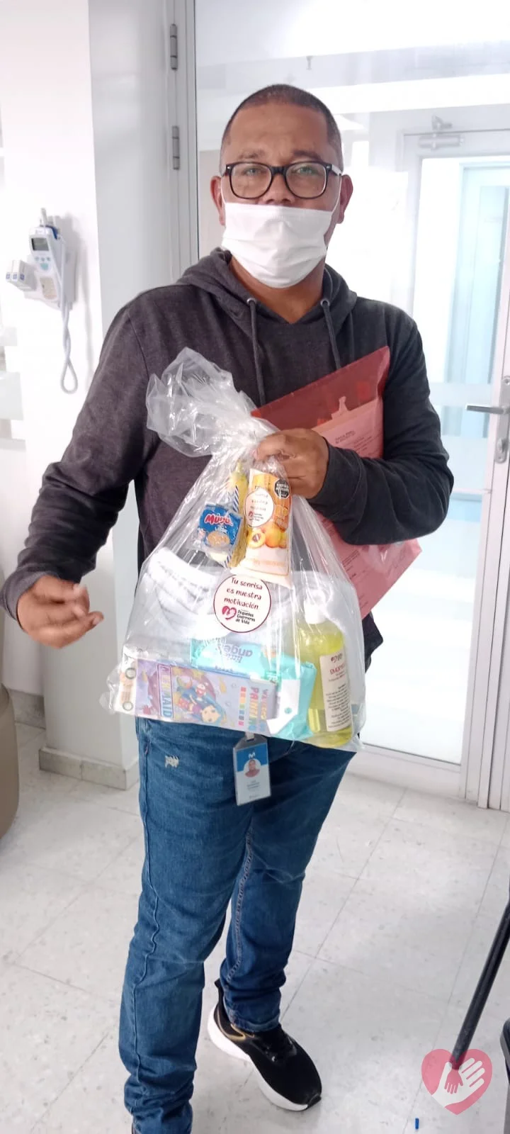Para los niños atendidos en el Instituto Nacional de Cancerología, realizamos una jornada de acompañamiento en la que cada niño recibió un kit de aseo personal, compuesto por toalla para el cuerpo, jabón y shampoo, con el objetivo de brindar bienestar, cuidado personal y un momento de atención especial para ellos y sus familias.