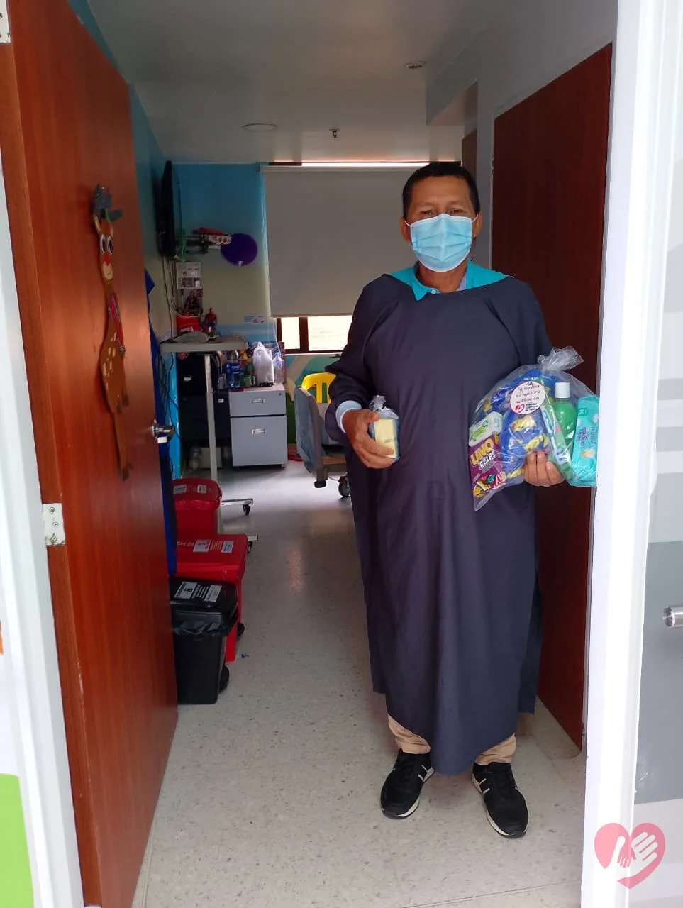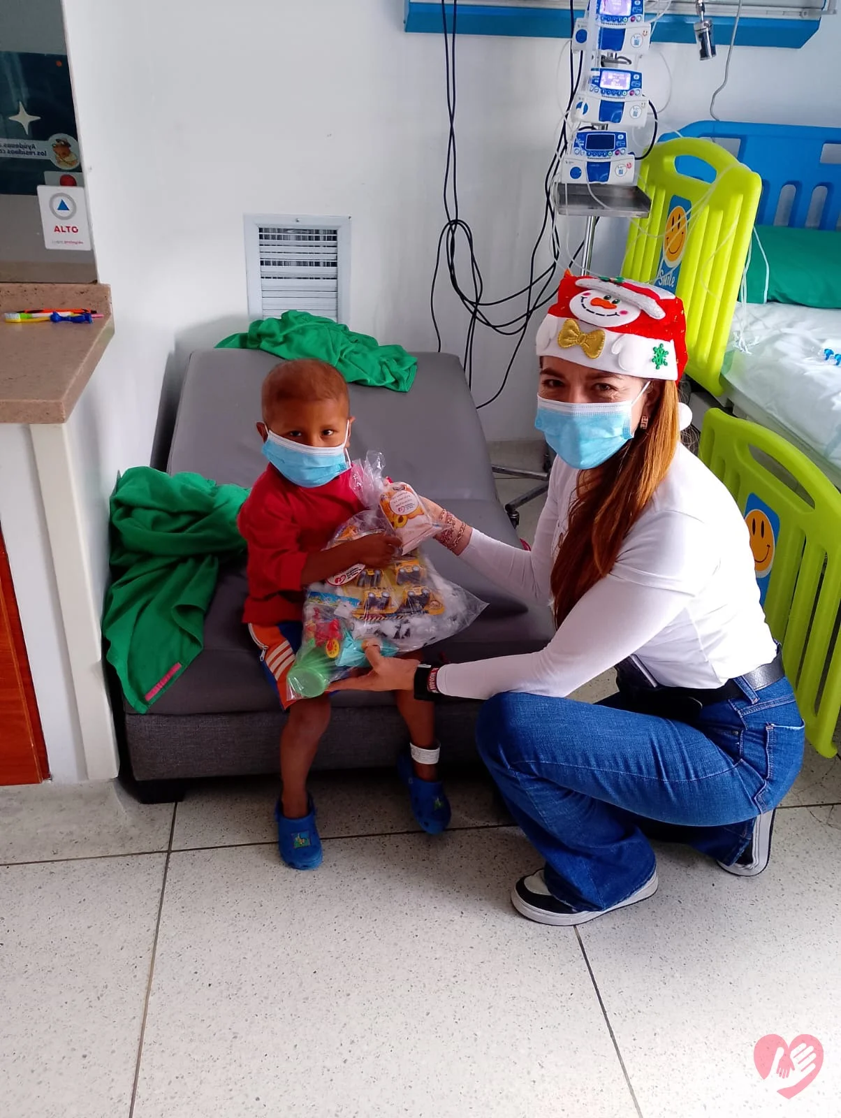 En el Instituto Nacional de Cancerología, realizamos la entrega de 50 kits de aseo, pijamas térmicas y juguetes, visitando las áreas de hospitalización pediátrica oncológica, quimioterapia, urgencias y UCI.